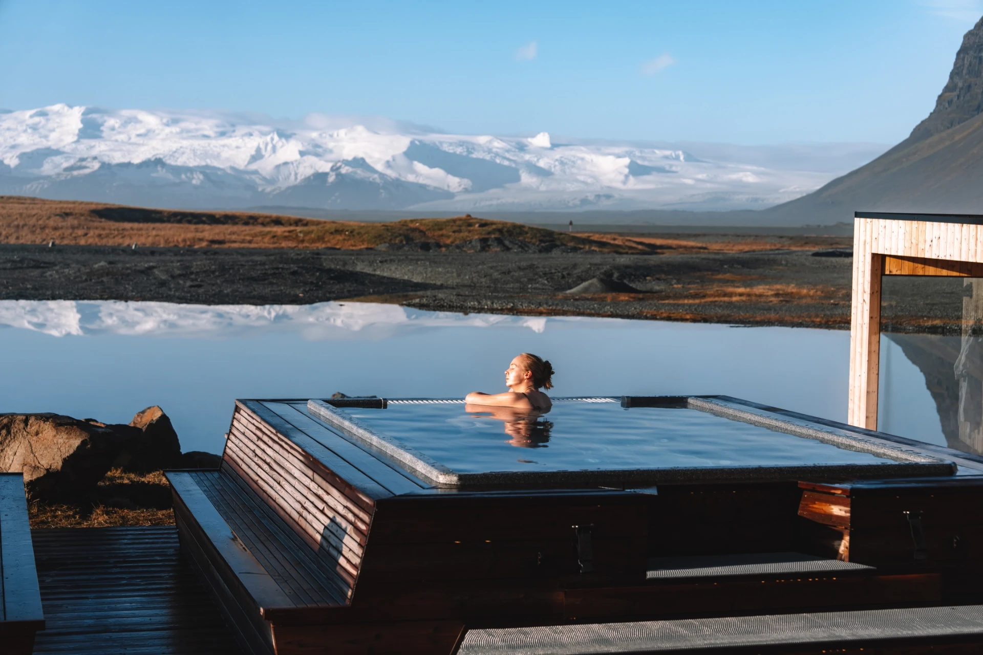 A serene retreat on Iceland’s southeastern coast, blending modern comfort with nature, just minutes from the glacier lagoon—ideal for catching the Northern Lights in a peaceful, remote setting